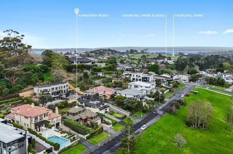 Perched directly opposite the park in a quiet, no-exit street just a short drive to beaches, shops and amenities; and in zone for Glendowie College and Churchill Park School.