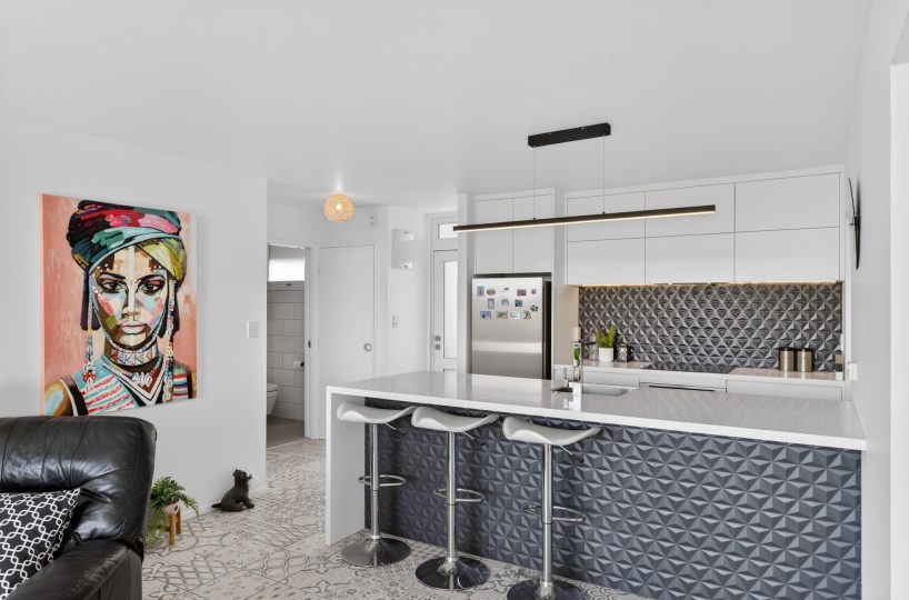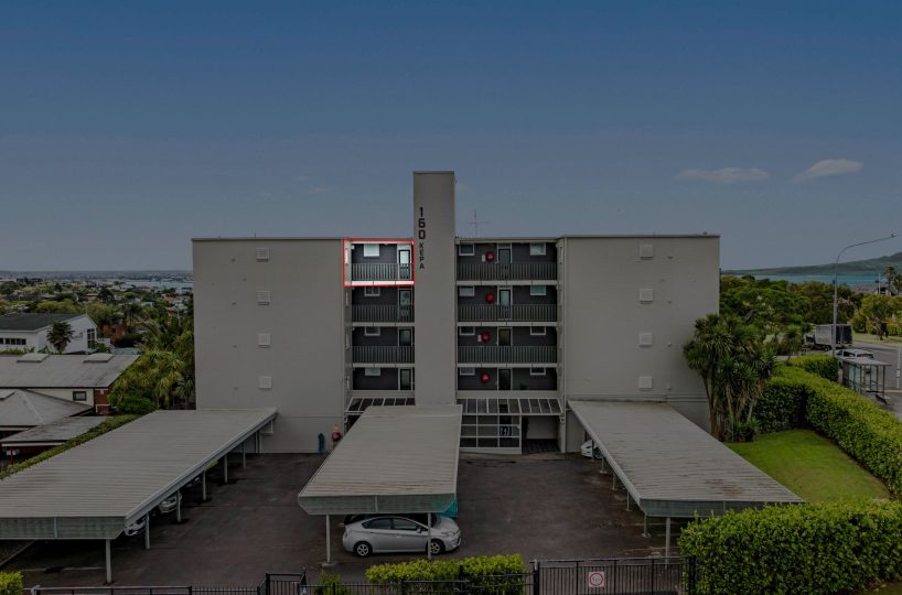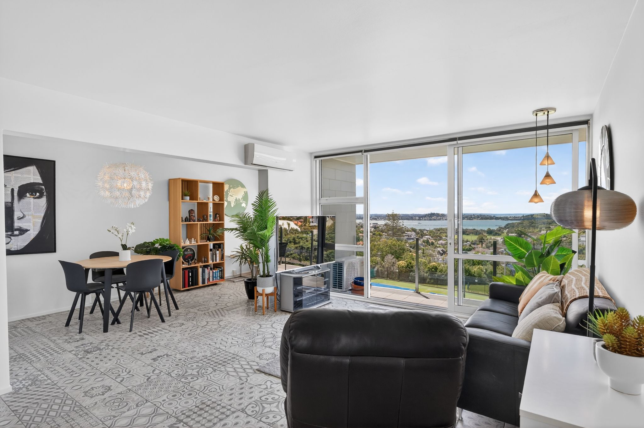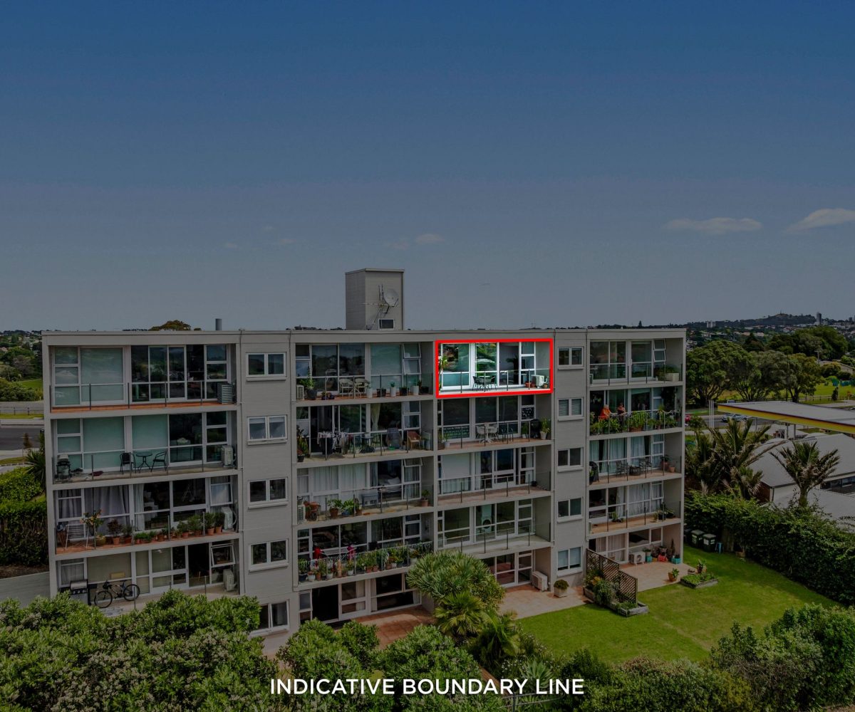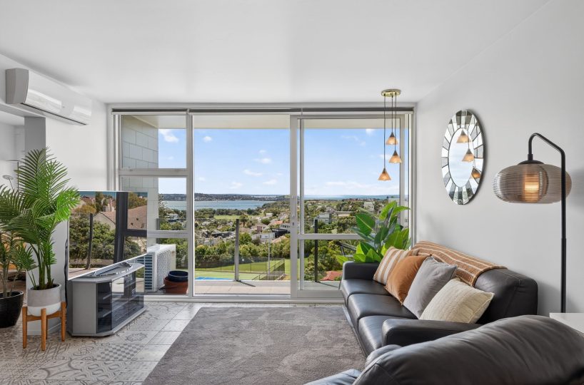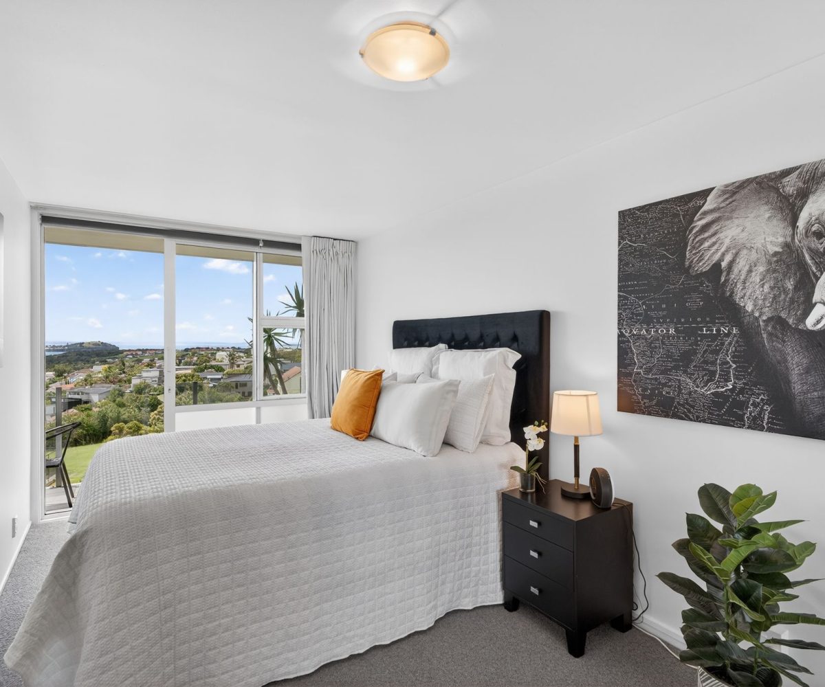 Perched high on the fifth floor, this beautifully maintained one-bedroom apartment delivers sweeping panoramic views that stretch from the Waitākere Ranges across the city skyline, Rangitoto and out to Hunua Ranges – views you’ll never tire of waking up to.