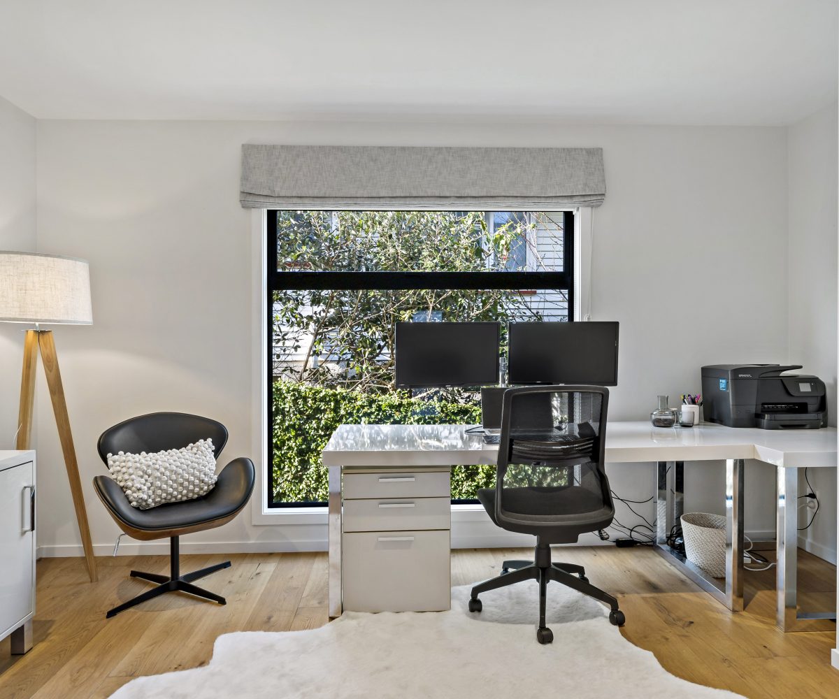 Enter through the vibrant red front door and stroll down the glass corridor, where the promise of breathtaking sea views draws you in. The main living area is a sanctuary of light, space, and uninterrupted water vistas – perfect for gathering and unwinding. The elegant lounge invites conversation, while the designer kitchen, with its waterfall granite benchtop and gourmet appliances, turns every meal into a celebration.