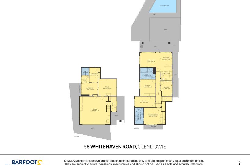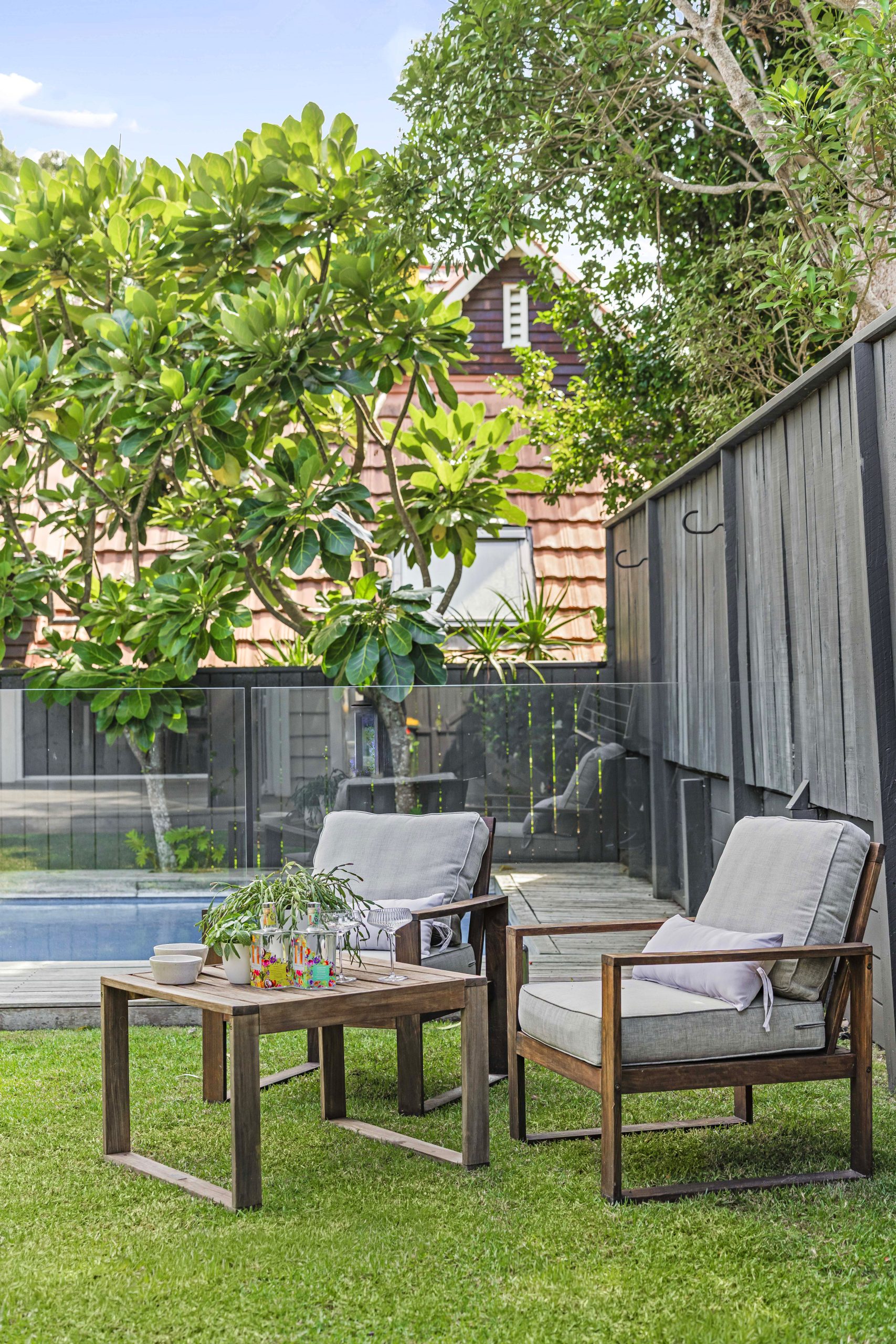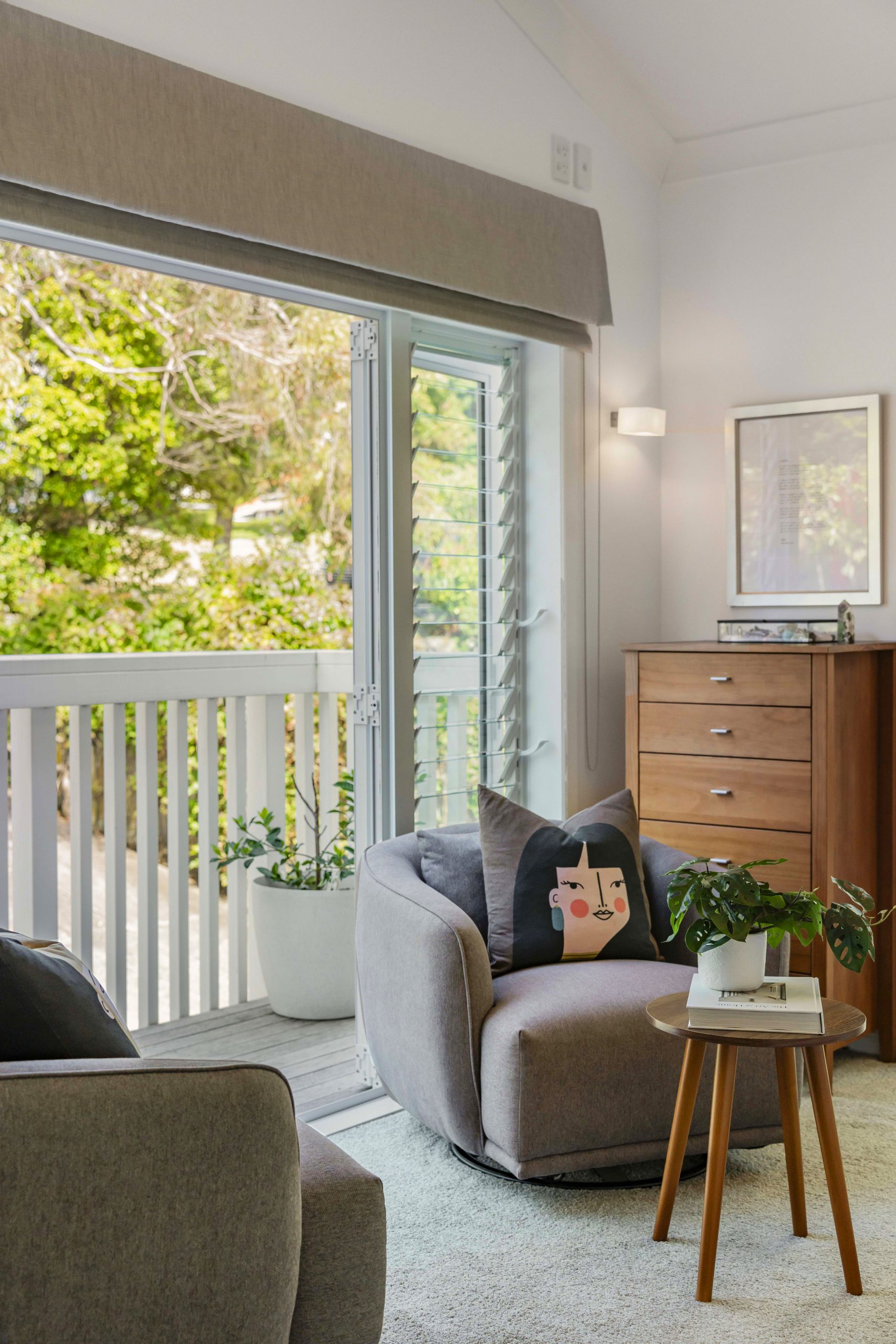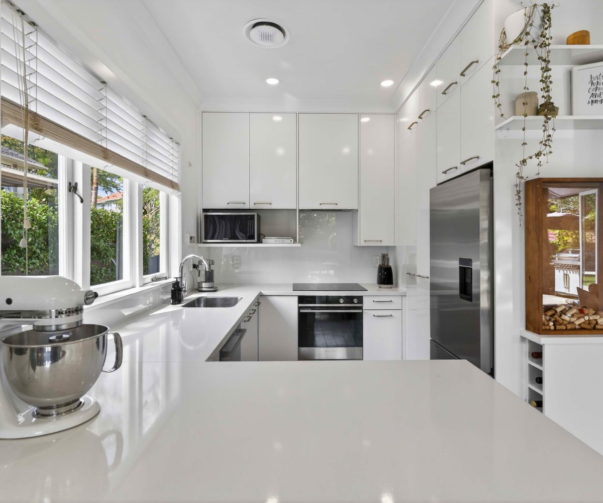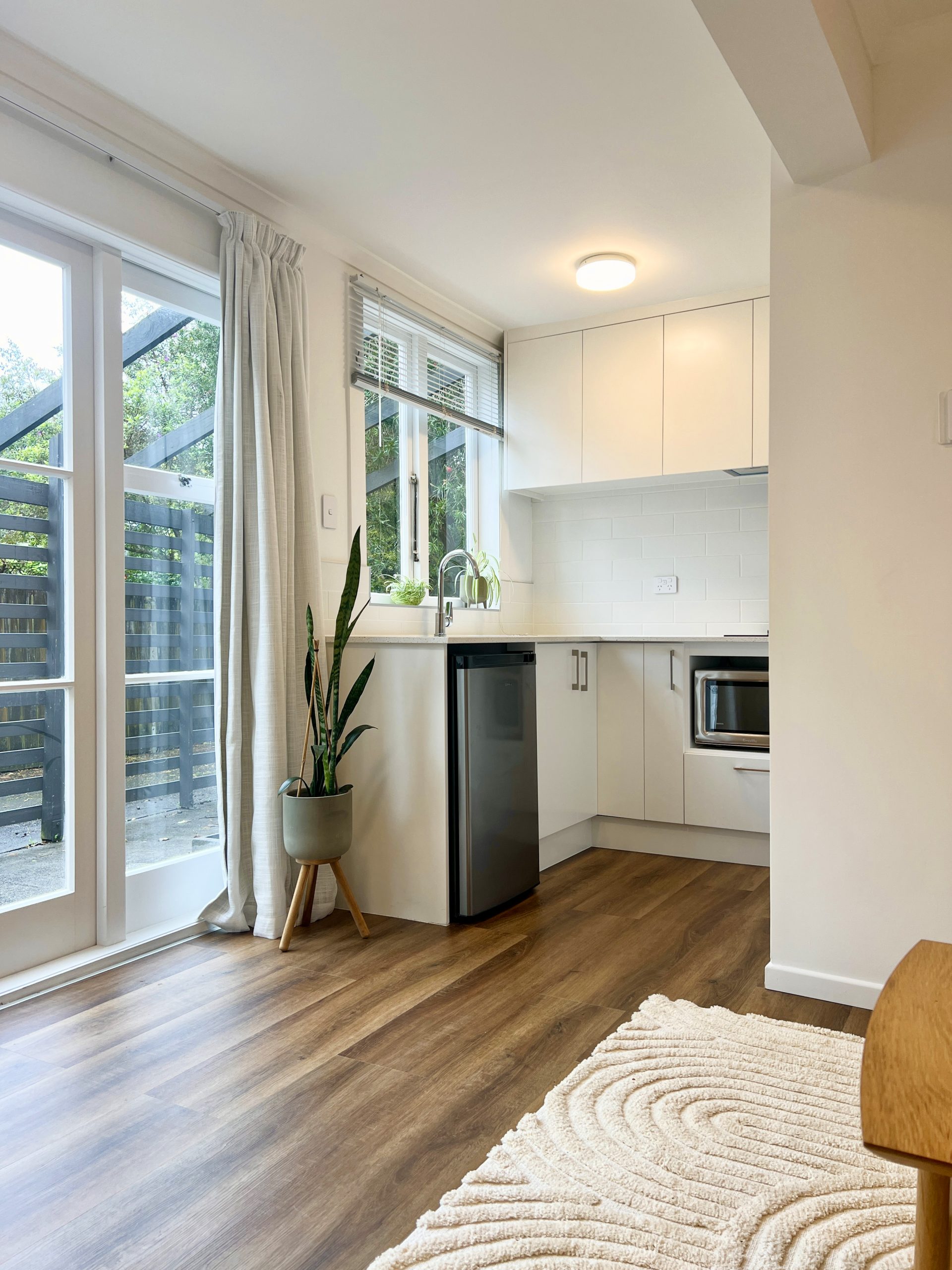 A vibrant yellow front door invites you into the light-filled foyer, setting the tone for the warmth and character that flows throughout the home. Step inside and discover an open-plan living, kitchen and dining area that seamlessly connects you to the outdoors. Here, floor-to-ceiling windows bathe the space in natural light and frame picturesque views of landscaped gardens and the sparkling pool, basking in sunlight all day long. Three generous bedrooms provide restful retreats, with the master suite boasting an expansive en suite, large wardrobe space and a whimsical ‘Rapunzel’ balcony draped in flowing sheers – the perfect setting for morning coffee or sunset relaxation.