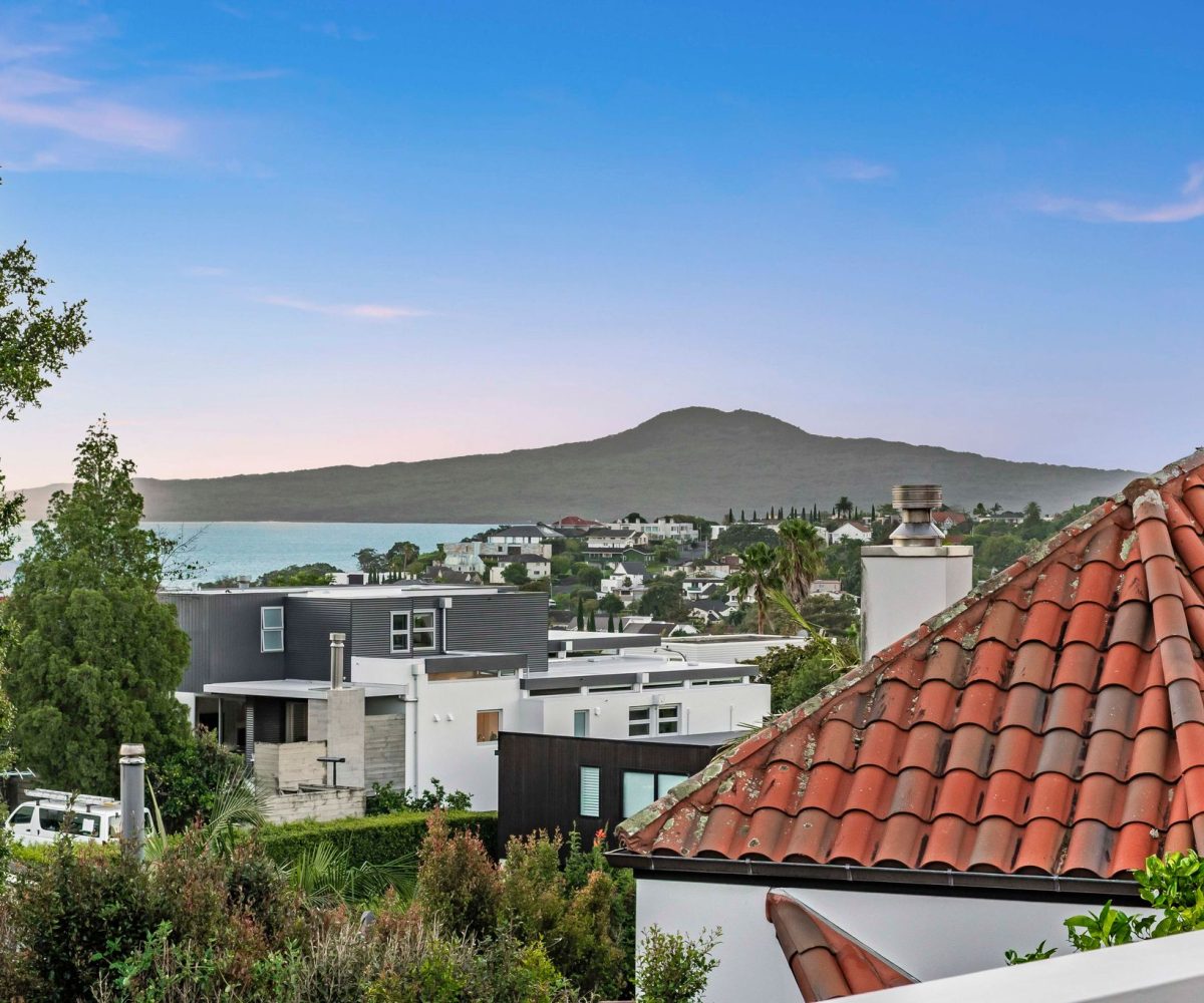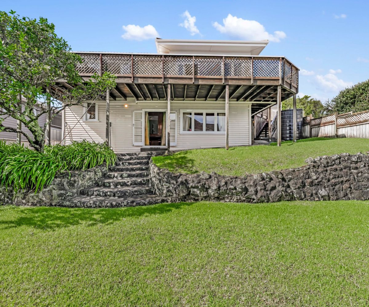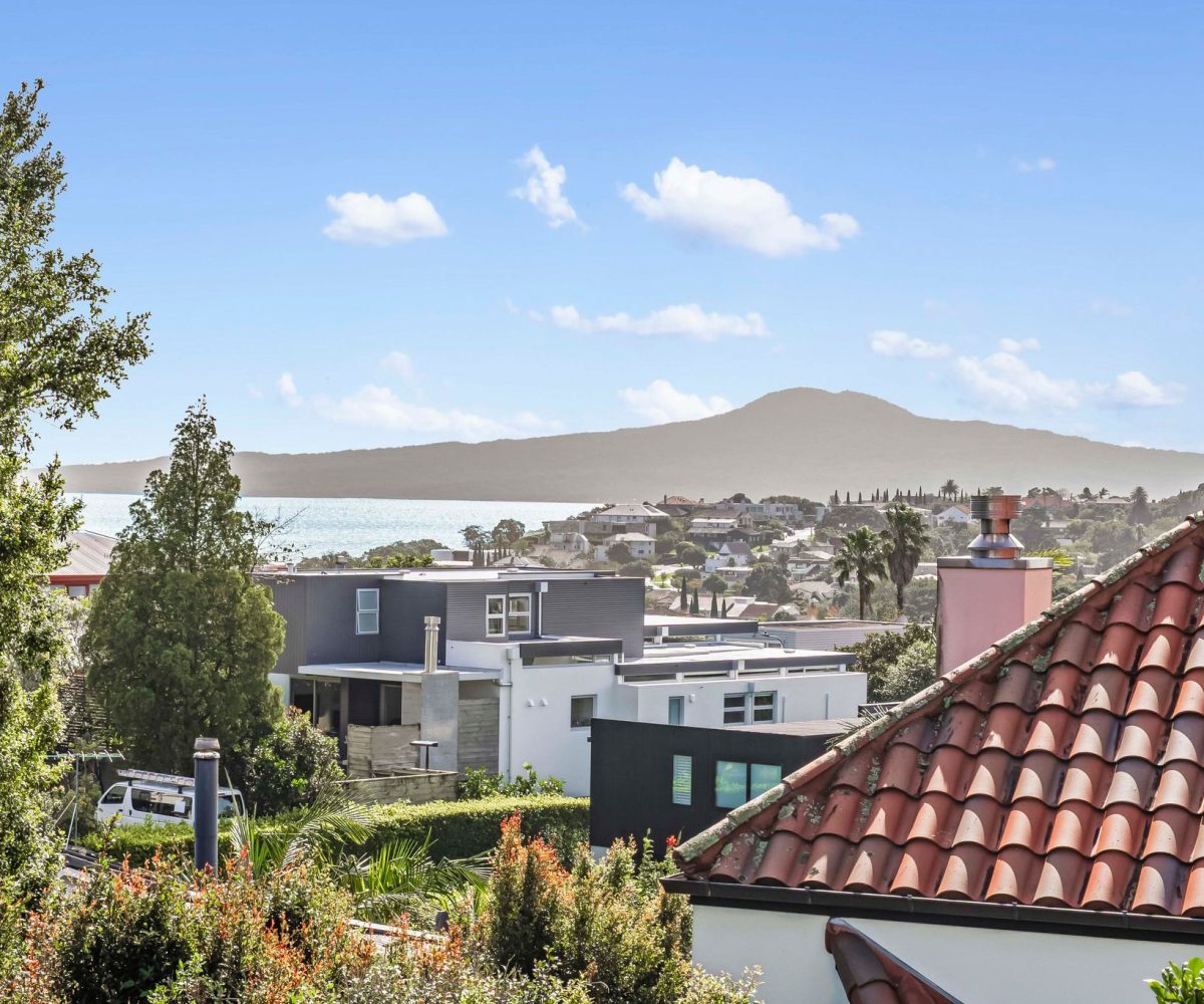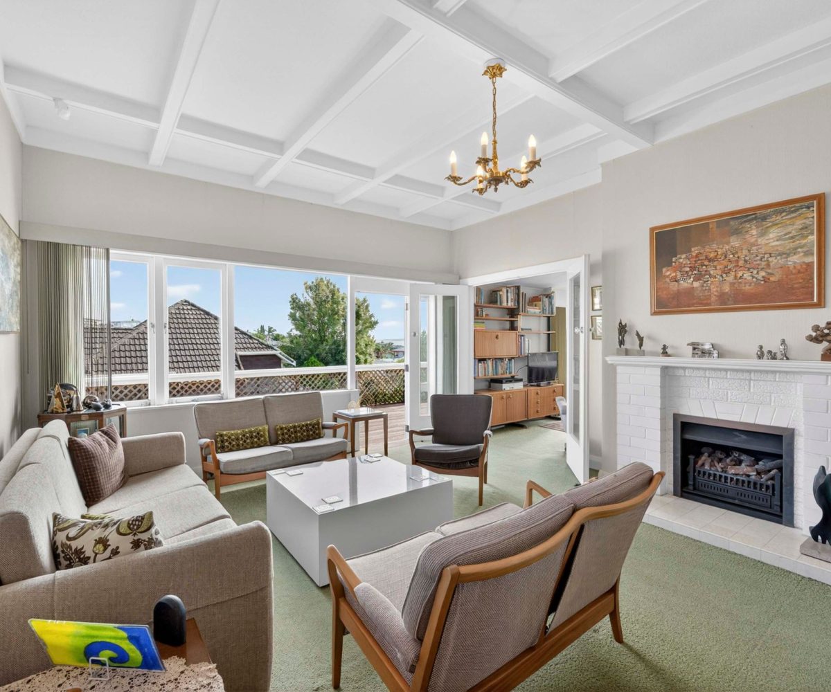 Spread across a substantial 184m² footprint with wide hallways, generous bathrooms (including a unique ‘throne room’ in the garage), and two separate living areas – ideal for families who cherish both connection and privacy. The kitchen flows seamlessly to the dining area and then into a sunny, north-facing living room, complete with a charming fireplace for those cosy winter evenings. Both areas open out to the wrap-around deck from where you can enjoy elevated views of Rangitoto. There are three spacious bedrooms, with the potential to create a fourth.