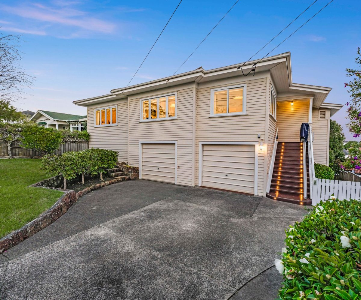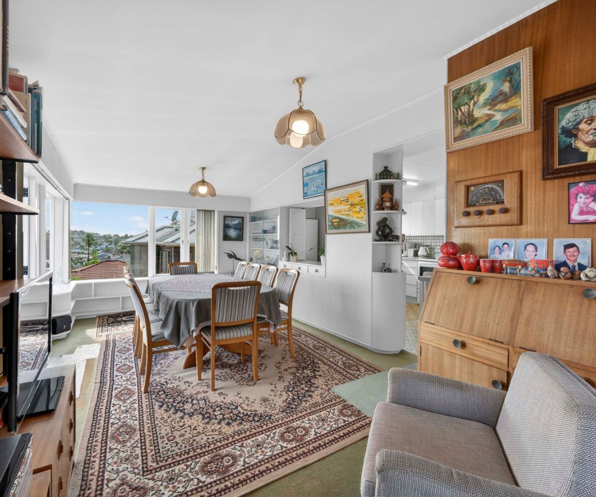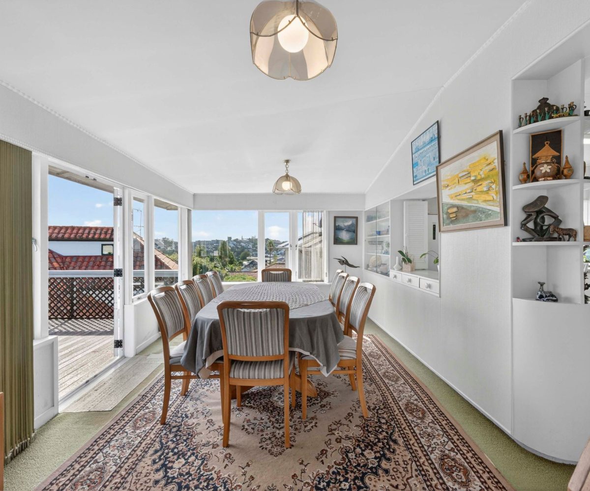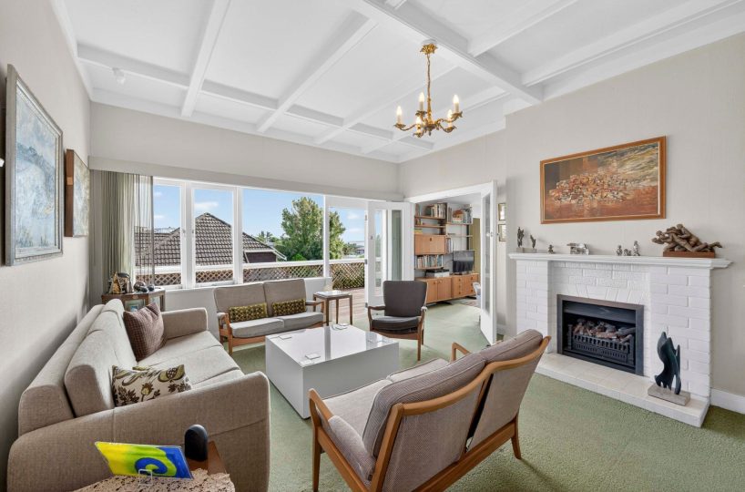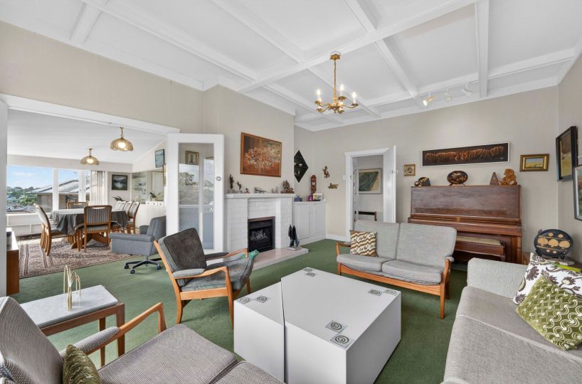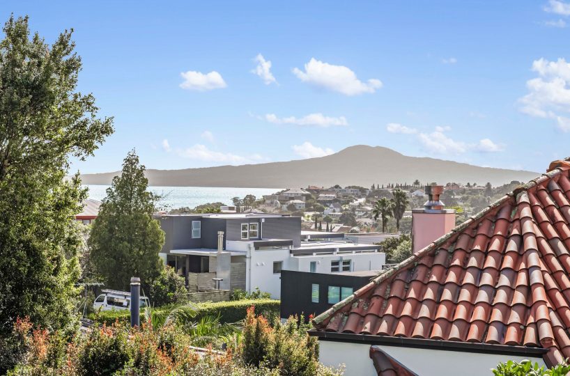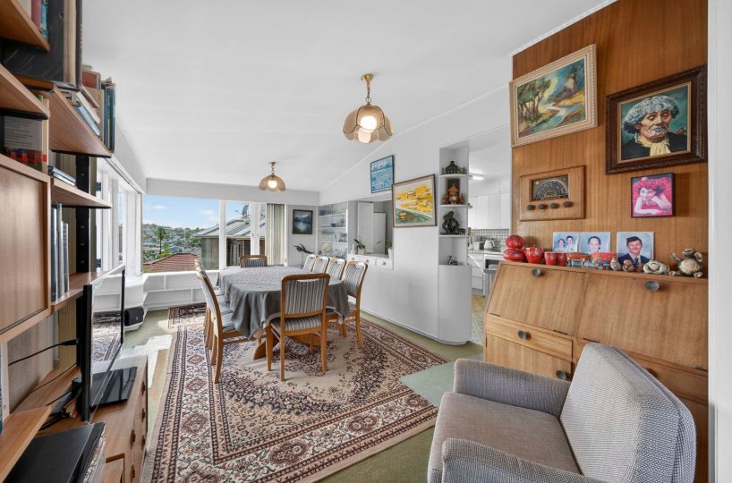 Spread across a substantial 184m² footprint with wide hallways, generous bathrooms (including a unique ‘throne room’ in the garage), and two separate living areas – ideal for families who cherish both connection and privacy. The kitchen flows seamlessly to the dining area and then into a sunny, north-facing living room, complete with a charming fireplace for those cosy winter evenings. Both areas open out to the wrap-around deck from where you can enjoy elevated views of Rangitoto. There are three spacious bedrooms, with the potential to create a fourth.