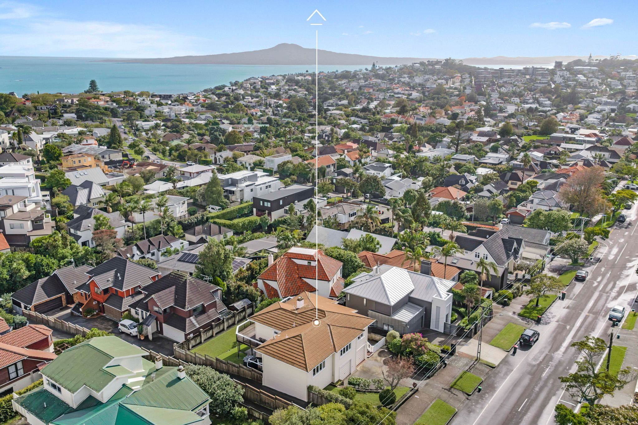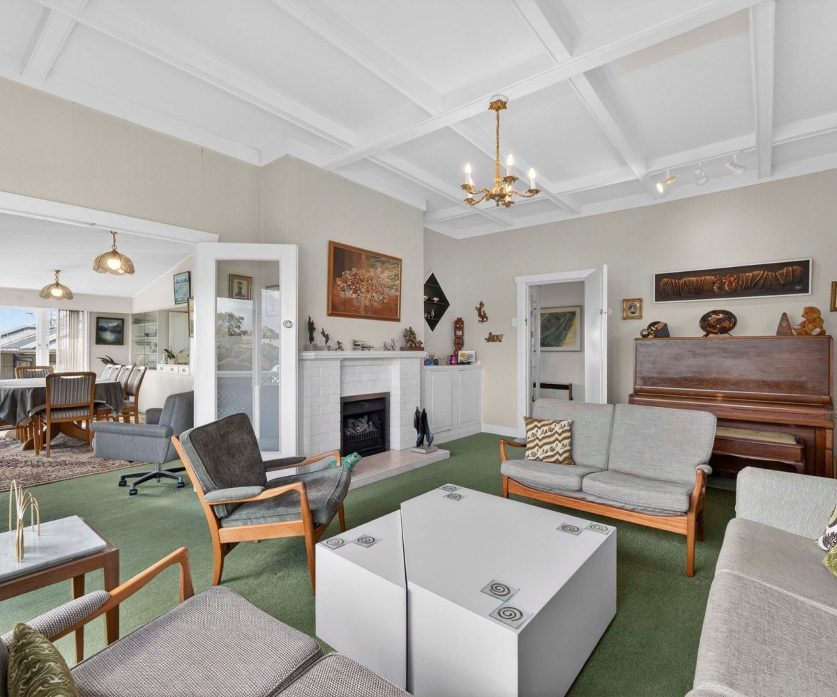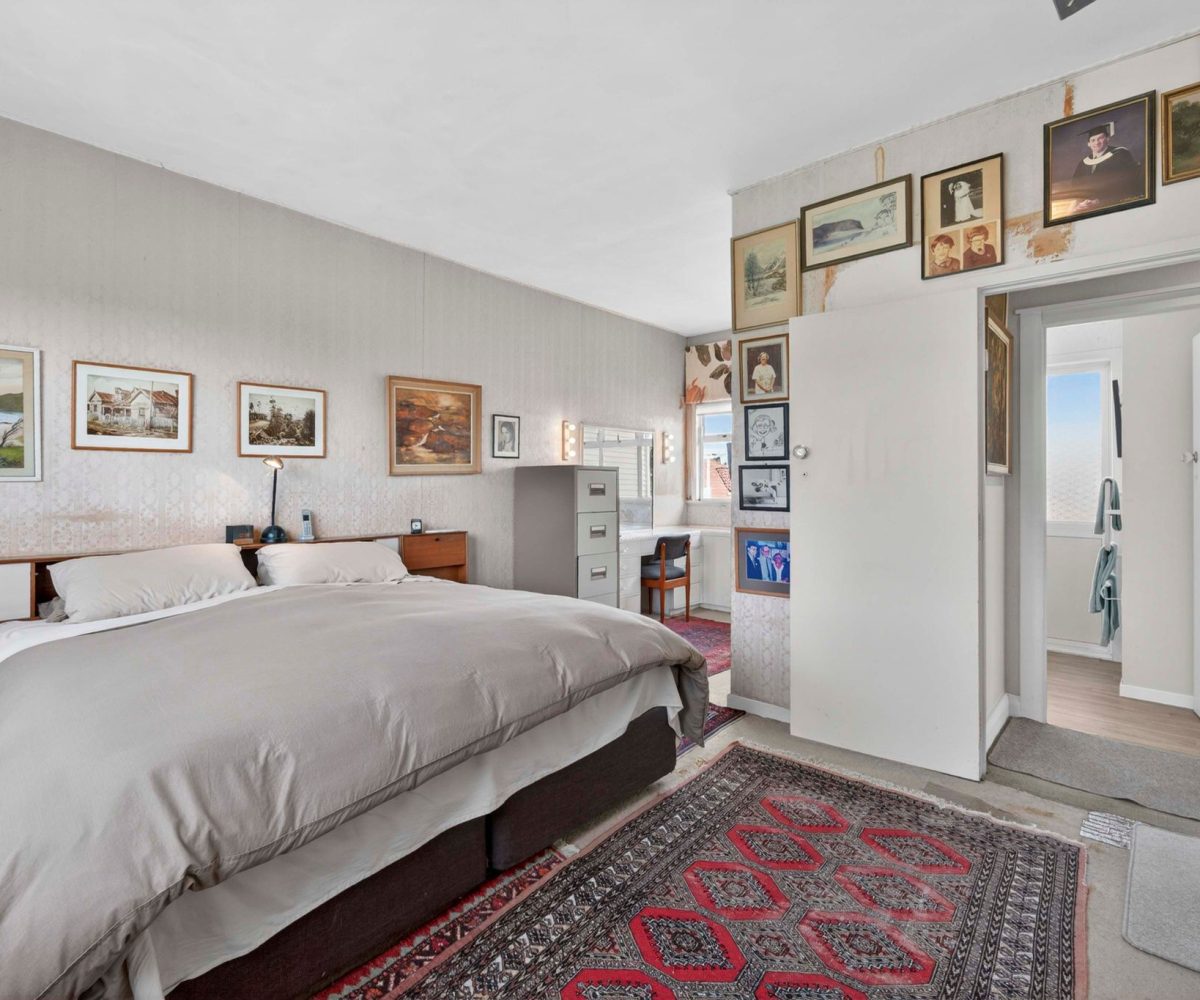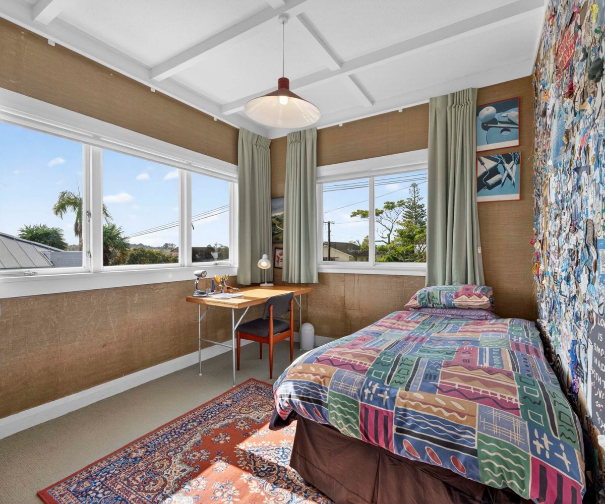 Spread across a substantial 184m² footprint with wide hallways, generous bathrooms (including a unique ‘throne room’ in the garage), and two separate living areas – ideal for families who cherish both connection and privacy. The kitchen flows seamlessly to the dining area and then into a sunny, north-facing living room, complete with a charming fireplace for those cosy winter evenings. Both areas open out to the wrap-around deck from where you can enjoy elevated views of Rangitoto. There are three spacious bedrooms, with the potential to create a fourth.