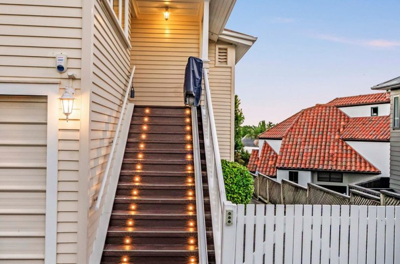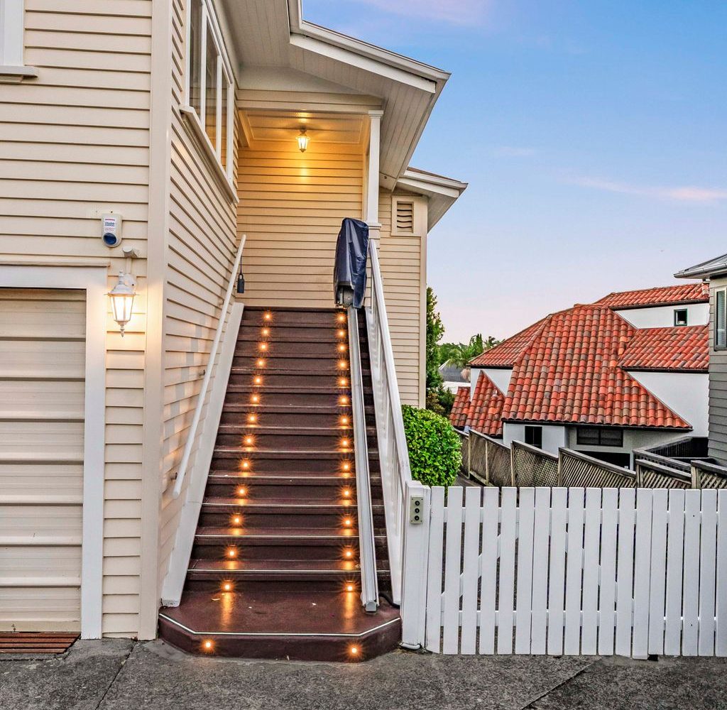 … so-called by neighbours and friends as the stairs, fitted with enchanting lights, guide your ascent to the entrance of this original 1920s residence, standing proudly on Maskell Street’s high point.